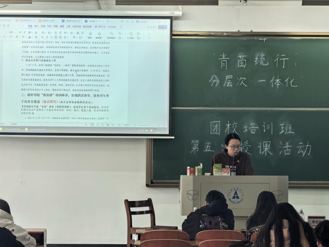 新闻网讯(学生通讯员 张欣彤 邵清扬)3月14日下午,统计与数学学院“青苗统行”“分层次·一体化”团校培训班第五次授课活动于南湖校区文波楼211顺利举办。统计与数学学院团学骨干李欣玲、杨奕睿、杨姝煜、任薪宇及25级团学组织公文写作类部门成员参加本次活动。