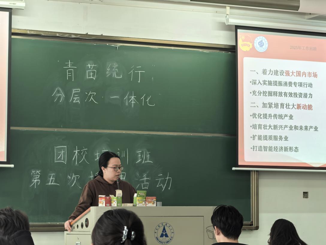 活动伊始,聚焦全国两会学习。李欣玲以全国两会小知识互动开场,让理论学习兼具互动性与专业性,充分调动现场学习积极性。随后,她紧扣2026年政府工作报告要点,从2025年工作回顾、“十五五”时期主要目标和重大任务、2026年政府工作任务三个维度展开系统讲解,深入解读国家发展大计中的青年机遇、底气与责任,帮助团学成员全面领会全国两会精神。