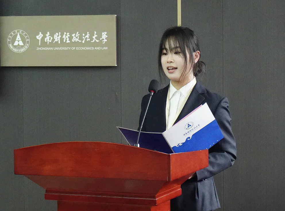 经济贸易学院志愿者协会会长彭雯倩介绍了新成立的三支志愿服务队。“文绎”“青帆”“青翼”三支队伍聚焦理论宣讲、社区实践、爱心托管等各领域,结合学科专业,通过项目化运作、常态化服务、品牌化建设,打造具有经贸特色的志愿服务品牌。