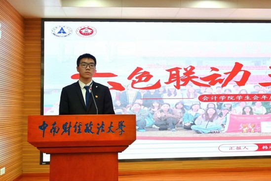 “凝聚共识促发展,深化改革开新局”。会计学院学生会依托功能型团支部深化理论学习,建立四维考评机制,以学促干、提能增效;举办“中南财经杯”学生案例大赛,与工商管理学院联办“博彩文思,创迎未来”博文大创分享会,涵养勤学善思的优良学风;健全院企协同联动机制,举办第十四届“中南会院杯”企业联合面试挑战赛,实现校企资源共享与平台互通。