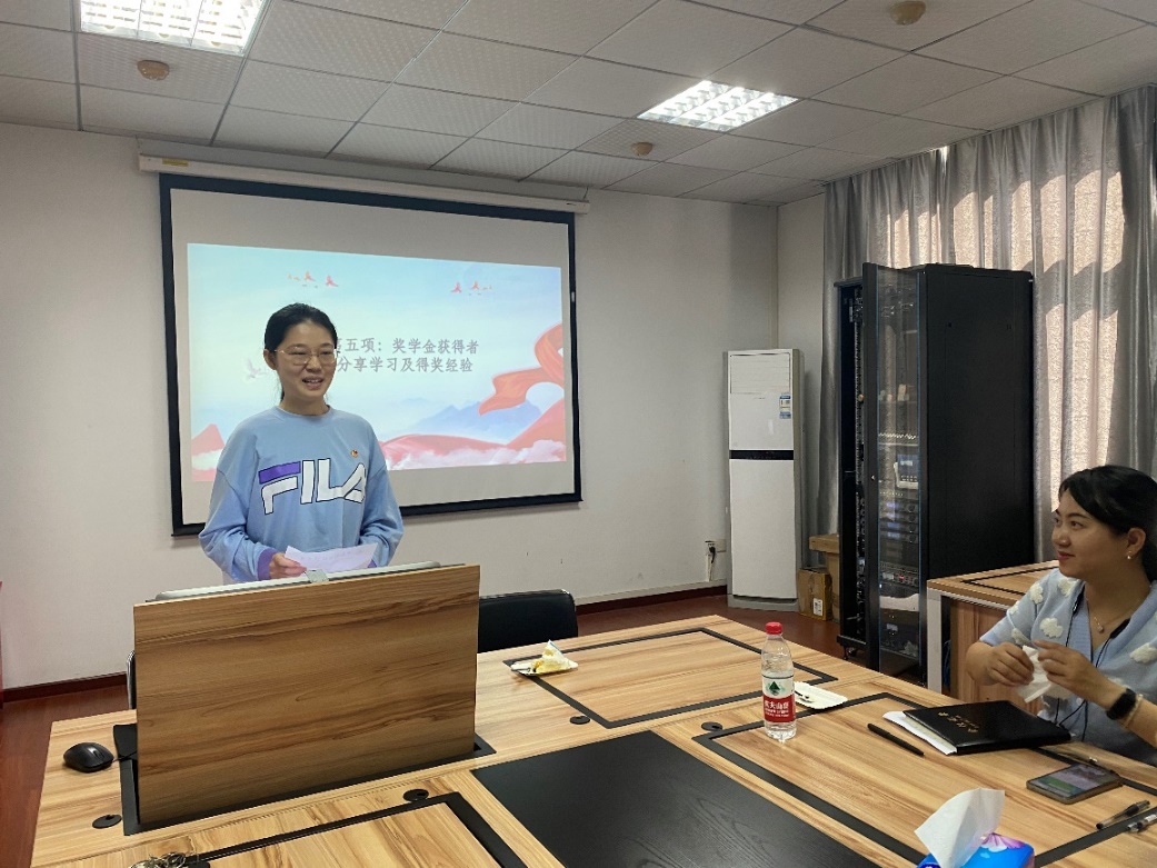 伴随着激扬的中国共产主义青年团团歌《光荣啊,中国共青团》,本次团日活动正式开始。支部邀请获得国家奖学金与一等奖学金的于跃、桂典同学分享获奖经验。于跃、桂典结合一年来个人在学习、工作、生活中的做法,鼓励大家学习要注意平时的积累,同时积极参加集体活动与团体赛事,积累经验。随后,洪佳琪同学分享了自己暑假支教经历,向同学们展示了自制的支教总结视频,鼓励同学多参加志愿活动,为志愿事业贡献青春力量。