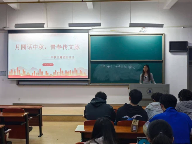 工商2403团支部的唐欣同学以“月圆话中秋,青春传文脉”为脉络,聚焦中秋文化进行深度解读。团员们通过史料分享与故事讲述,系统了解中秋节从先秦“秋分祭月”到唐宋定型、元明清发展的千年历程,重温嫦娥奔月、吴刚伐桂等经典传说,深刻领悟“团圆和谐”的节日内核。同时还特别提及2025年中秋的时代意义,让传统节日与当下生活产生紧密联结。