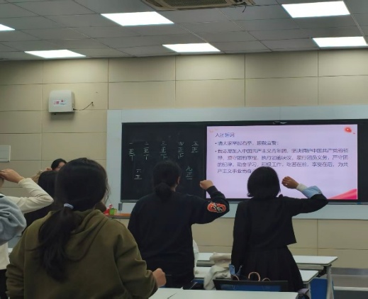 会议的第一项,团支书宋舒琪同学带领大家重温入团誓词。右拳高举间,誓言铿锵入耳,强化了同学们对团员身份的认同,为团日活动筑牢了思想根基,成效显著。