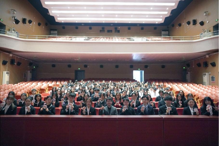 大会在庄严的团歌声中拉开帷幕,全体与会人员肃立齐唱,激昂旋律彰显青年学子坚定的理想信念与昂扬的精神风貌。