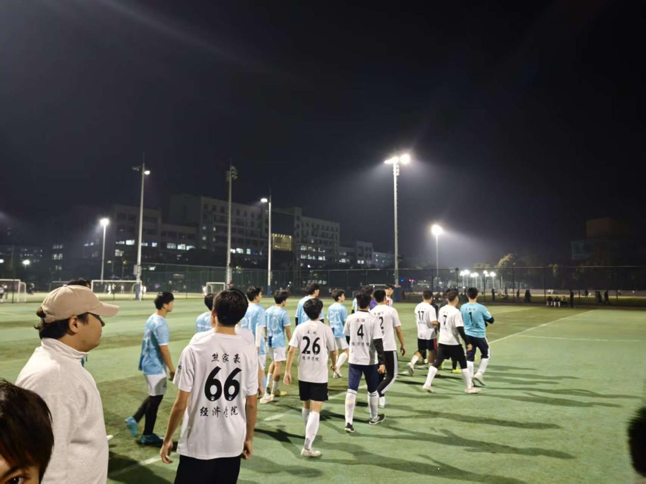 淘汰赛阶段,经济学院代表队首赛对战金融学院二队。队员们凭借成熟的攻防体系和高效的战术执行,全程掌控比赛节奏,最终以10:0的绝对优势取胜,顺利进入四强。半决赛对战实力强劲的上届亚军外语文澜联队,经济学院代表队开局先失一球陷入被动,关键时刻,教练团队及时调整战术、队员顶住压力、奋起直追,最终成功扭转战局,以2:1的好成绩进入决赛。