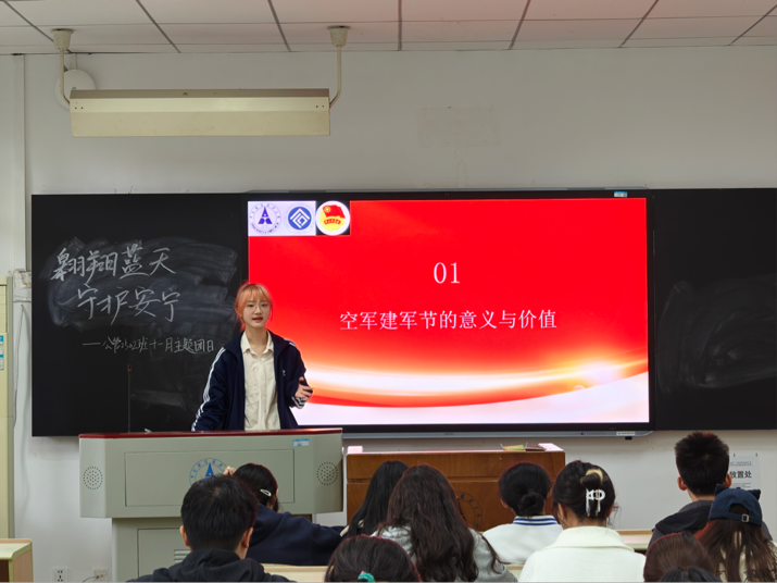 新闻网讯(学生通讯员 胡苏涵)11月14日下午,公管2502班举办了一场以“翱翔蓝天,守护安宁——中国人民解放军空军发展历程与展望”为主题的团日活动。本次活动通过丰富多样的形式,带领同学们深入了解人民空军的光辉历程,感悟空军精神,激发爱国热情。