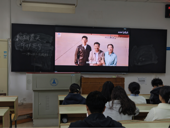 活动在微电影《人民空军成立76周年之际,“玄龙”升空!》的展播中拉开帷幕。影片以震撼的画面展现了新时代空军战机的英姿,让同学们直观感受到人民空军现代化建设的辉煌成就。“玄龙”战机的矫健身影,象征着人民空军76年来从无到有、从弱到强的奋斗历程,瞬间点燃了全场同学的蓝天情怀。