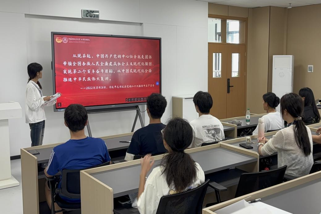 “强国复兴”专题学习作为系列活动的开篇,聚焦“深刻理解中国式现代化的内涵与特征”核心议题,为新团员搭建起理论学习的坚实平台。组织建设办公室副部长江婉霞从中国式现代化的历史逻辑、理论逻辑、实践逻辑出发,系统阐释了其“人口规模巨大、全体人民共同富裕、物质文明和精神文明相协调、人与自然和谐共生、走和平发展道路”的鲜明特征,深入解读了中国式现代化在强国复兴征程中的战略意义。