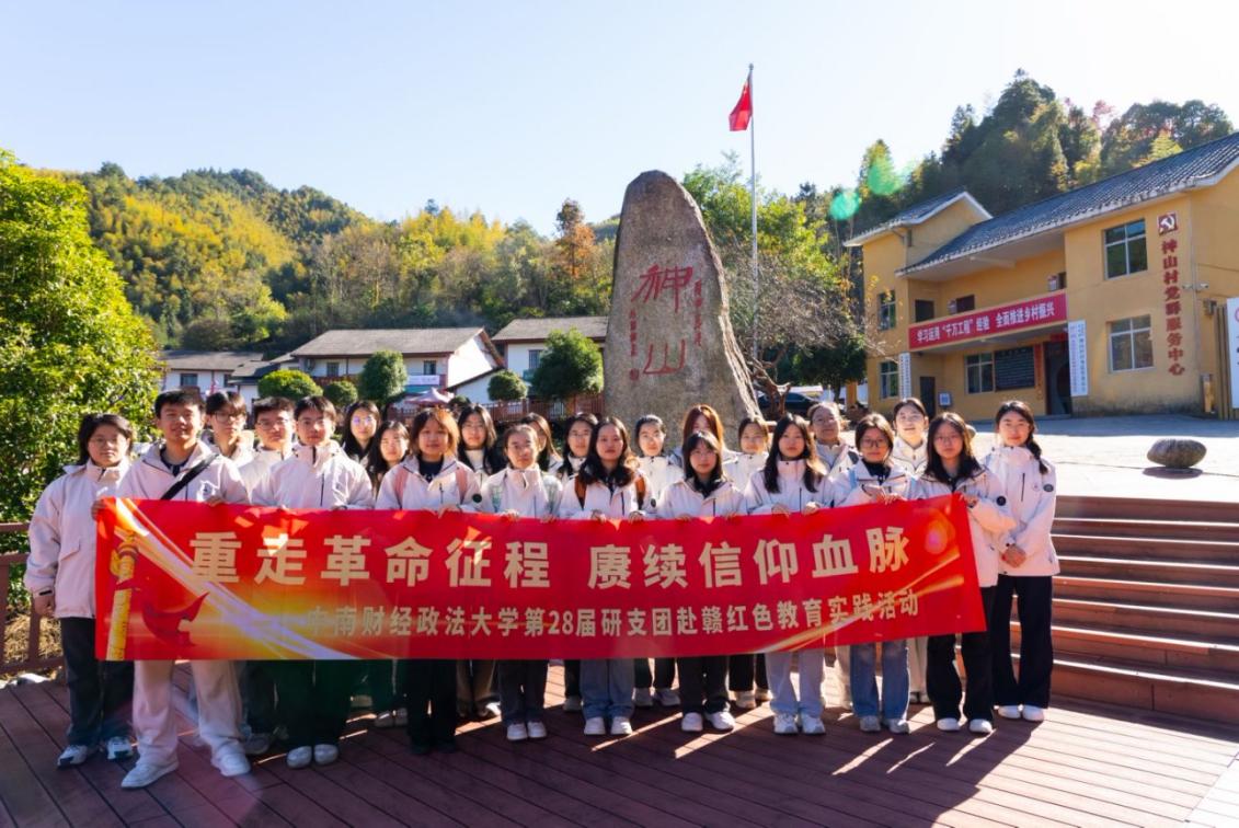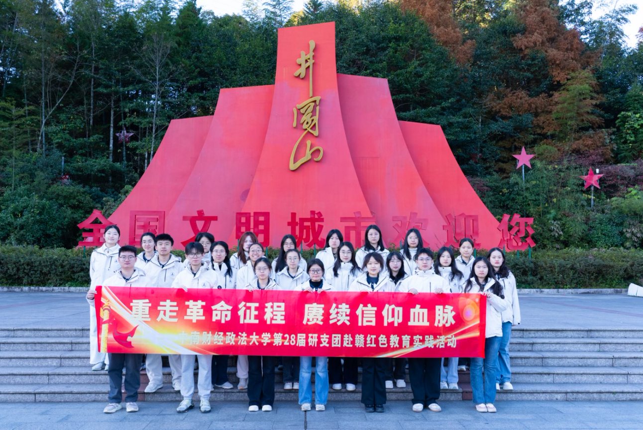 新闻网讯(学生通讯员 尹亦心 张寒圣雪)为严格落实《关于深入实施青年马克思主义者培养工程的意见》和《共青团中央办公厅关于实施青年马克思主义者培养工程西部计划专项和研究生支教团专项的通知》要求,用好红色资源,传承红色基因,引导青年学生在实践中坚定理想信念、厚植家国情怀,11月28日至30日,中南财经政法大学第28届研究生支教团赴江西开展为期三天的“重走革命征程 赓续信仰血脉”红色教育实践活动。团队成员先后走进井冈山、南昌两处革命圣地,追寻先辈足迹,感悟红色信仰力量,逐步将红色教育实践活动经历转化为青年报效祖国、建功西部的内在动力,展现中南大学子昂扬向上的精神风貌。