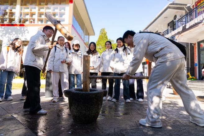 团队沿着蜿蜒的山道,追随习近平总书记考察井冈山的脚步,深入神山村,实地感受脱贫攻坚与乡村振兴的伟大成就。在神山村,研支团成员体验打糍粑这一传统民俗活动,深刻体会在党的领导下革命老区人民实现生活巨变的幸福图景。