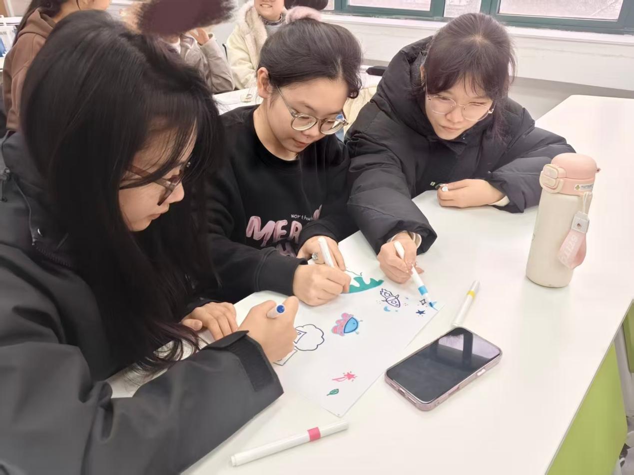 活动以共唱团歌《光荣啊,中国共青团》拉开序幕,激昂的旋律迅速凝聚起青春力量。在第二个理论环节“国家蓝图与我的坐标”中,为预热本次团日活动,支部先组织成员参与了2025年“青年大学习”“青春为中国式现代化挺膺担当”线上主题团课,围绕“十五五”时期经济发展、科技创新、乡村振兴等核心领域开展专题学习,正在陆续完成“一课一学”理论打卡;随后在班级团支书带领下,班级同学在“关键词解读”环节系统了解了“中国式现代化是强国建设的康庄大道”“十五五”规划是2026-2030年现代化建设的全面部署”“航天精神是共产党人精神谱系的重要部分”等核心内涵,理论要点更具象可感。理论学习后,支部以“我的十五五大连四绘”为互动载体,引导成员围绕“绿色能源”“智慧城市”“深空探测”等关注领域,绘制包含关键词与简易图画的“未来蓝图”。