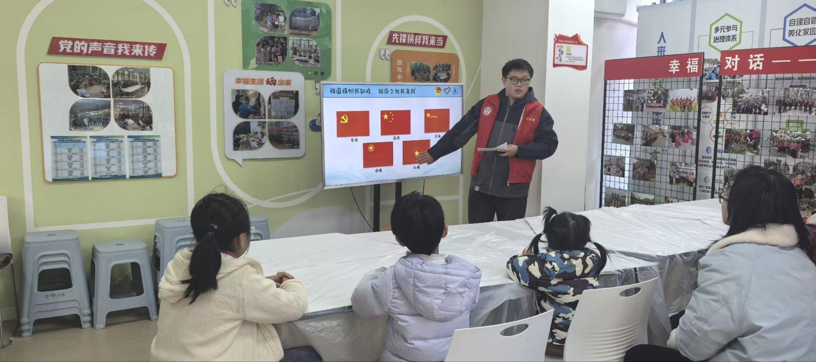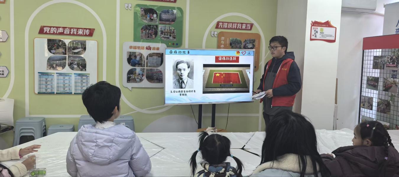 紧接着,故事的时间到了。志愿者用孩子们能理解的语言,讲述着旗帜背后那些可歌可泣的故事。当听到红军战士在井冈山的艰苦岁月里依然坚守信念,听到国旗设计者曾联松先生的一腔热忱时,孩子们安静了下来,小脸上写满了专注与崇敬。爱国情怀,无需宏大叙事,就在这娓娓道来中,悄然浸润着幼小的心田。