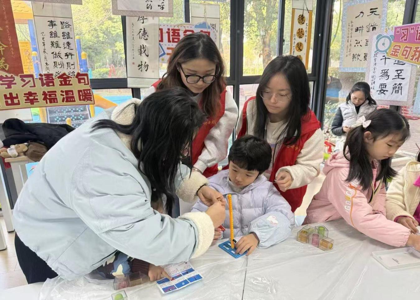 课程的高潮出现在“动手操作”环节——制作国旗升降台。小小的木架、滑轮、线和一面精致的手持国旗发到每个孩子手中。在志愿者哥哥姐姐的耐心指导下,孩子们小心翼翼地组装。当亲手让五星红旗沿着小小的旗杆平稳升起时,那种成就感与仪式感无以言表。一位叫乐乐的小朋友骄傲地举着自己的作品说:“看!这是我做的升旗台!我以后每天都要让它升起来!”这一刻,国家认同与自豪感,在一次次拉动绳索的实践中,深深扎根。