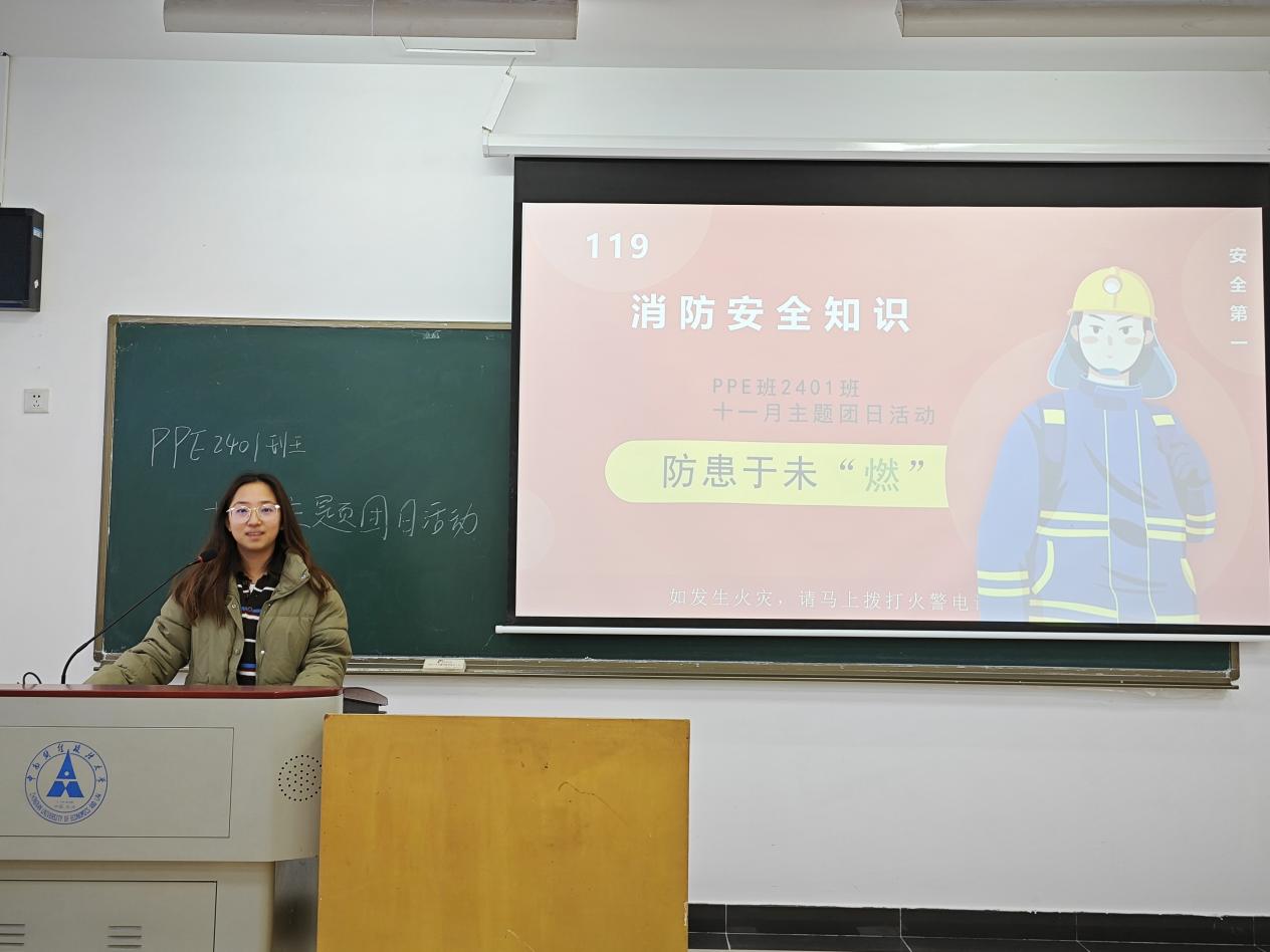 新闻网讯(学生通讯员 苟艺桉)为深入学习贯彻习近平总书记关于安全生产的重要指示精神,增强团员消防安全意识,PPE2401团支部于11月25日在文泰楼110教室开展了“防微杜渐,筑安致远——全民消防,生命至上”主题团日活动。活动由团支书潘柳任同学主持,支部全体团员参与。