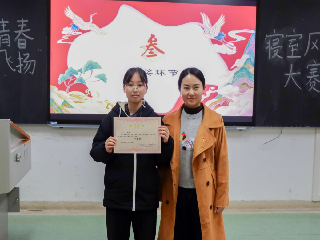 每个寝室展示结束后,均有评委老师进行提问。经过三个小时的激烈竞争,所有寝室都完成了风采展示,评委老师结合展示内容、问答表现等进行公平客观评分,经严谨统算后确定各寝室名次,并现场为获奖寝室颁发荣誉证书。
