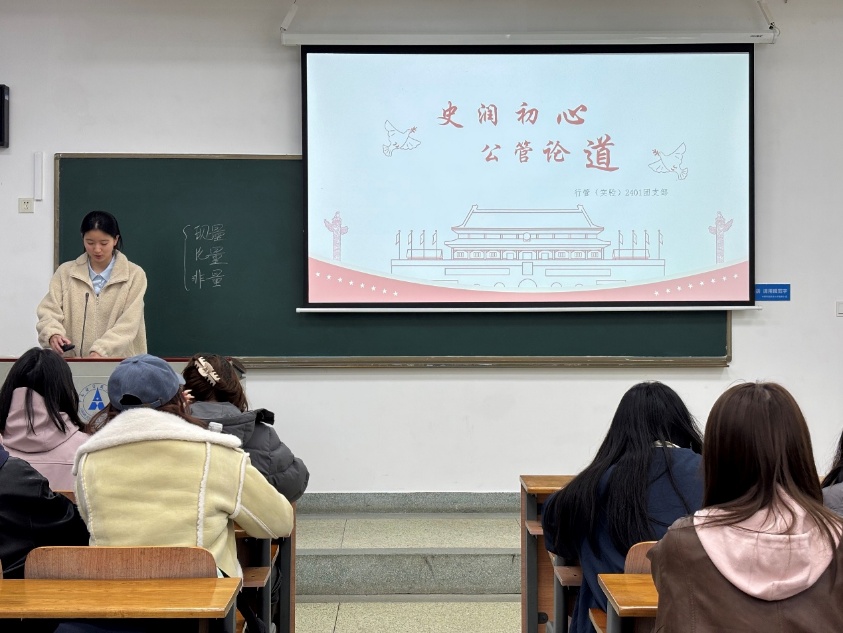 新闻网讯(学生通讯员 谭雯心)为深入弘扬伟大抗战精神,激发青年学子的爱国情怀与时代担当,2025年12月2日晚上8:15,行管(实验)2401班在中南财经政法大学南湖校区文泰208教室举办了“传承抗战精神,点亮红色校园”主题团日活动。本次活动巧妙融合理论研讨、思想碰撞与实践倡导,引导同学们深刻感悟抗战精神的丰富内涵,并自觉思考其与公共管理专业学习、个人成长实践的紧密联系。