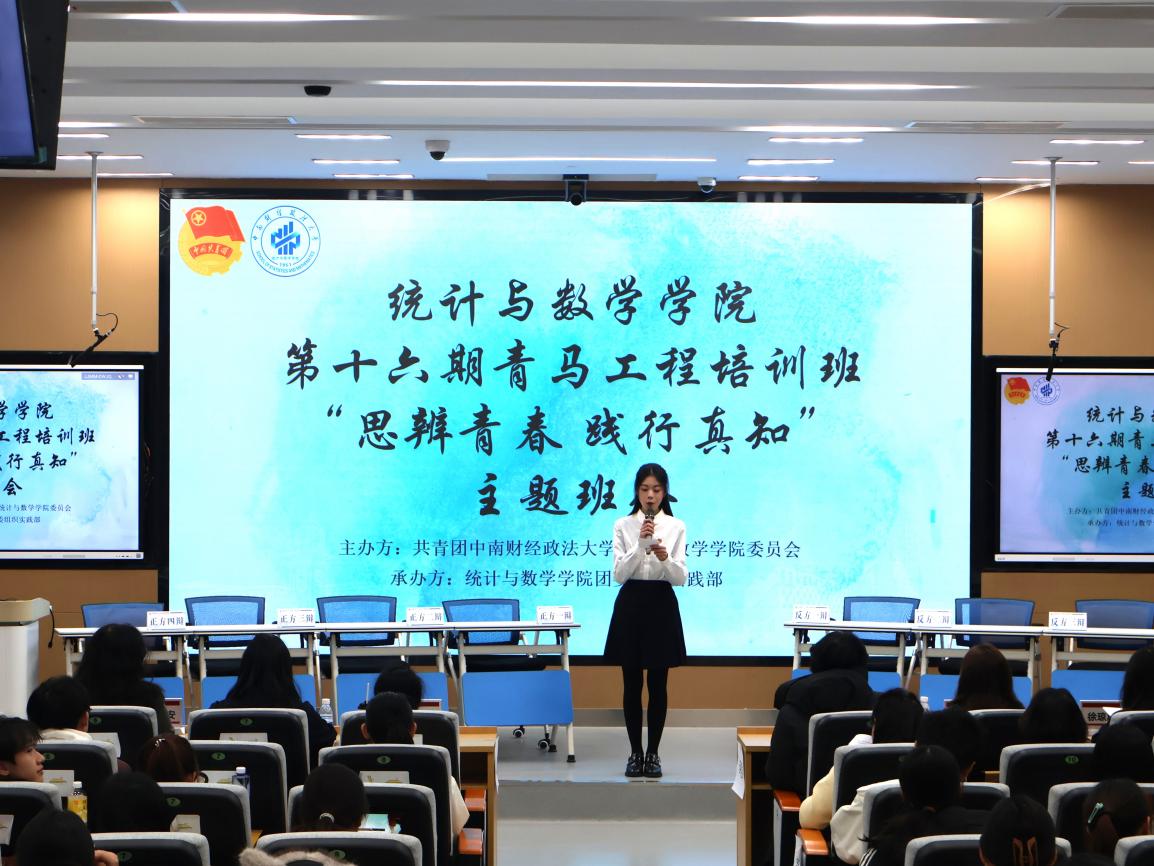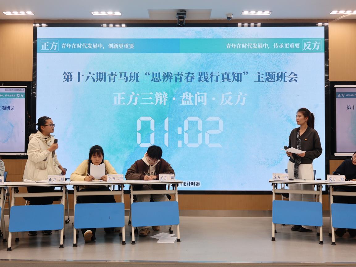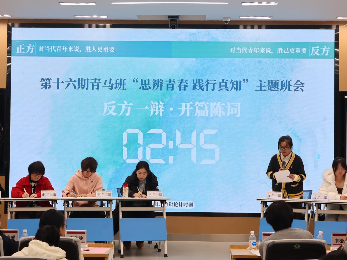 新闻网讯(学生通讯员 邵清扬 余思琪)为提升青马班学员的逻辑思维、团队协作与社会责任意识,统计与数学学院第十六期青年马克思主义者培养工程培训班主题班会于12月6日在南湖校区文波智慧教室112成功举行。本次活动以“思辨青春,践行真知”为主题,采用辩论赛交流的形式,通过两场高质量的思想交锋,引导青马学员在思辨中深化对时代命题的理解,展现当代青年昂扬向上的精神风貌。