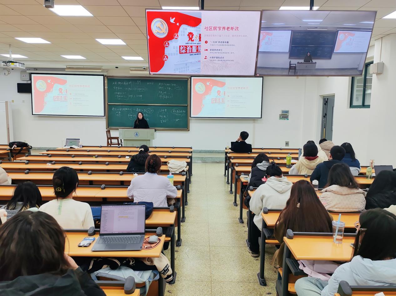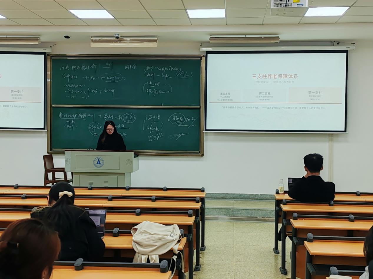 为了让同学们更好地理解国家在养老保障方面的政策设计,活动特别安排了政策解读环节。从三支柱养老保障体系到社区居家养老新政,同学们了解到由个人养老金、企业年金和基本养老保险共同构成的保障网络,以及“一刻钟”养老服务圈、家庭养老床位、长期护理险等创新举措。政策还鼓励青年力量下沉社区,提供多样化服务,让养老服务更加贴心、便捷。