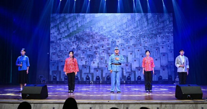 李潇寒、冉雯茜、沈优、乐霏阳、覃宗信、陈彦吾6位法学院主持团的同学代表法学院参加了本次比赛。参赛同学带来的作品《我的墓碑》,从抗日战争时期老百姓的视角出发,讲述了战火纷飞中的真挚情谊与国家存亡之际的赤胆忠心。一碗嫁衣面,一生家国念。参赛同学用声情并茂的表演,让观众穿越到了那段苦痛而沉重的岁月,亲耳聆听老槐树下的约定、墓碑前的思念,亲身感受民族危亡时人民赤诚的信念。主持团的同学们把滚烫的家国情怀化作清越之声,尽显新时代青年的昂扬姿态。
