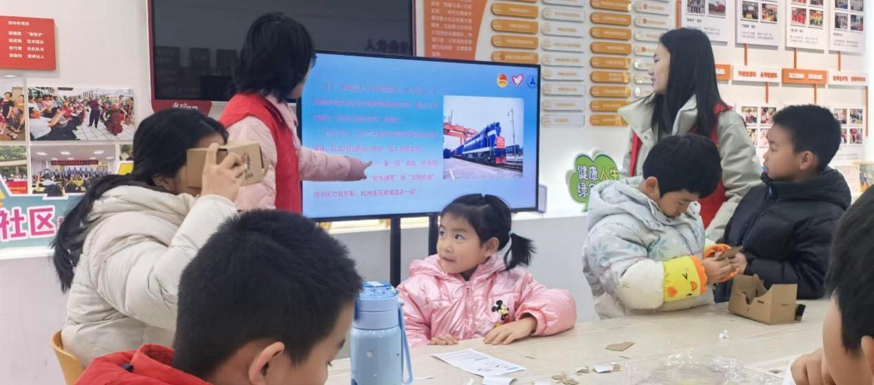 科技创新的探索随后转向了“一带一路”的国际视野。课程巧妙地将孩子们在VR体验时看到的丝绸之路风光,延伸到对“一带一路”倡议和“钢铁驼队”——中欧班列的介绍。志愿者用通俗易懂的语言为孩子们讲述了“一带一路”倡议是如何像这样一位友好的巨人,用他的手臂,跨越山海,将亚洲、欧洲、非洲乃至更远地方的朋友们紧紧连接在一起的。孩子们惊讶到,这竟然是一个覆盖150多个国家、让世界“通”起来的庞大合作网络。
