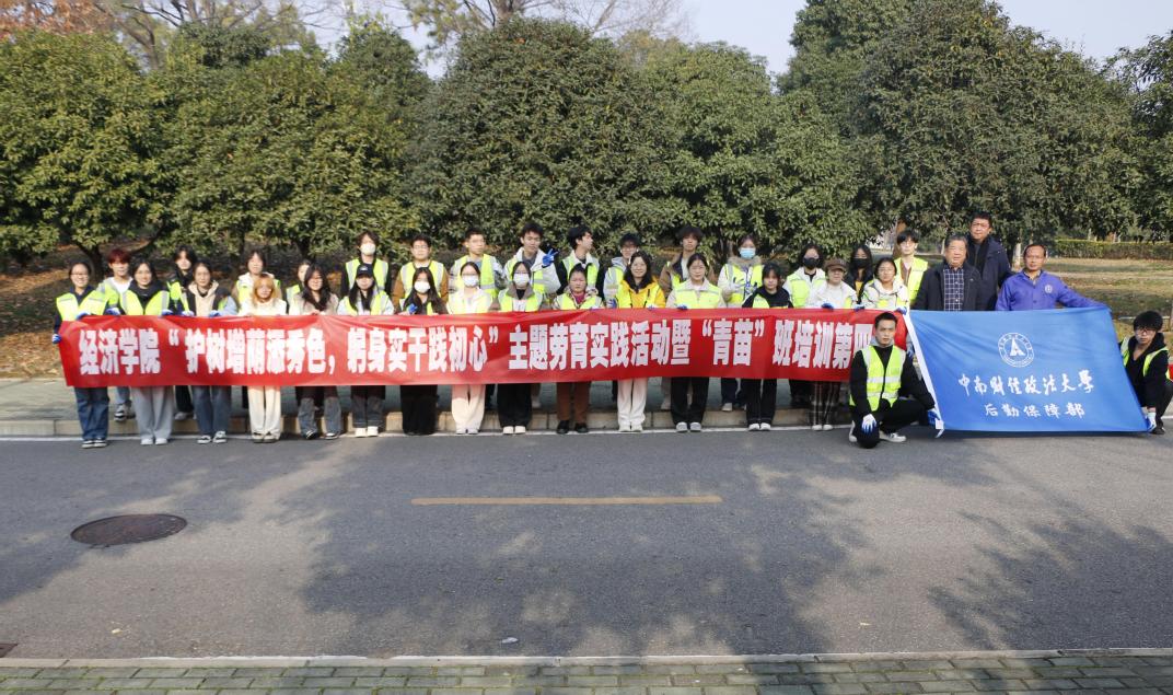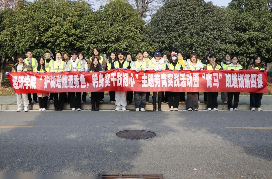 新闻网讯(学生通讯员 乔子莹 吴迪宇昂)为了培养经济学院团员的实践才干,践行绿色担当,助力校园生态建设,以“护树增阴添秀色,躬身实干践初心”为主题的“青马”、“青苗”团员培训班生态实践活动于2025年12月18日14:30在中南财经政法大学南湖校区望湖片区友谊林顺利开展。全体青马班和青苗班学员参与此次活动。