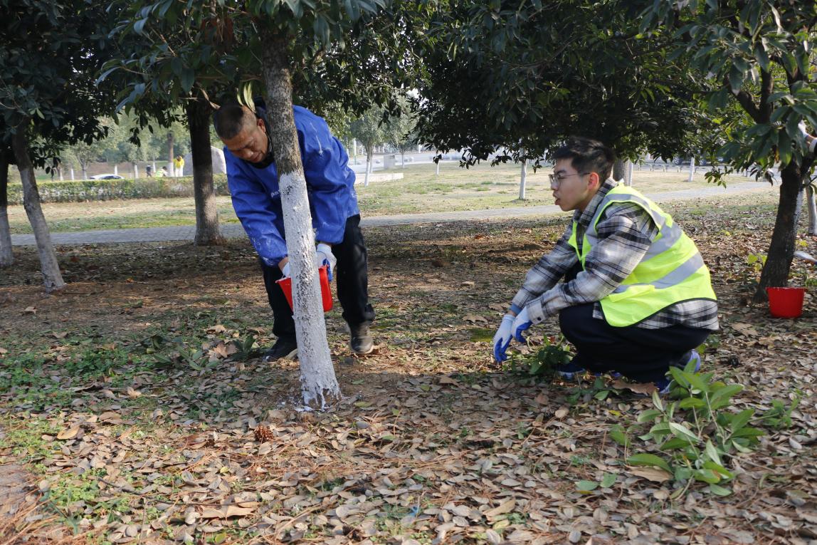 随后,老师亲自给同学们示范了如何给树刷白漆并且具体介绍了刷白漆对树木起到的防冻、防虫的保护作用。紧接着,青马班青苗班的学员亲自动手为树刷白漆。学员们三两结队,相互配合,认真完成树木刷白漆的每一个步骤。大家以实际行动践行绿色环保理念,为校园生态建设增添了一抹亮色。