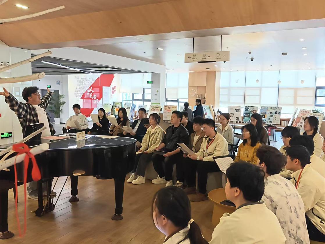 座谈结束后,调研组一行移步大学生素质教育中心钢琴区域,沉浸式参与我校大学生艺术团常态化排练,并与现场团员一同合唱《遇见》,近距离感受我校的美育育人氛围。