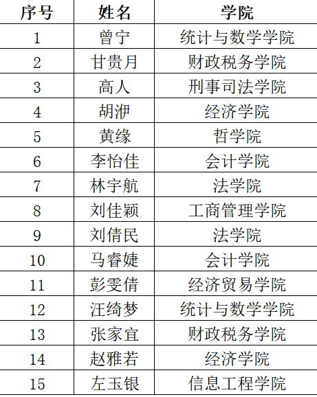 现将人员名单公示如下(按姓氏首字母排序):