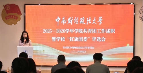 新闻网讯(学生通讯员 郑诗涵 张熠贝 摄影 叶致钰)4月10日下午,我校2025—2026学年学院共青团工作述职暨“红旗团委”评选会在南湖校区望湖大学生素质教育中心路演厅举行。校党委副书记陈狮、中国地质大学(武汉)团委书记王向东、华中农业大学经济管理学院团委书记徐嘉楠、校党委学生工作部、人民武装部部长、校团委书记黄小妹、党委组织部副部长屈代洲、党委宣传部副部长朱诚蕾、党委研究生工作部副部长李芳、各学院党委领导、团委负责人及学生代表参加活动。活动由校团委副书记林晶晶主持。