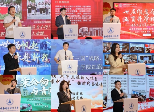 19个学院的团委书记依次上台展示。刑事司法学院强调以坚定理想信念为青春领航;外国语学院提出推进“三国”战略,共育时代新人;会计学院锚定价值引领核心,筑牢育人“会计准则”;文澜学院坚持思想引领与实践培养双轮驱动;国际法学院聚焦全面发展,构建“五星”育人体系;马克思主义学院推动“五育融合”,做实“四个育人”;哲学院注重以小见大、以行践知;经济贸易学院强化师生合力,服务成长发展;信息工程学院聚焦思想铸魂与科创赋能;统计与数学学院以党建引领团建,激发组织动能;财政税务学院赓续红色血脉,传承革命薪火。