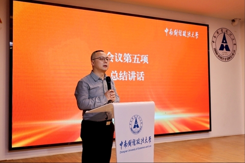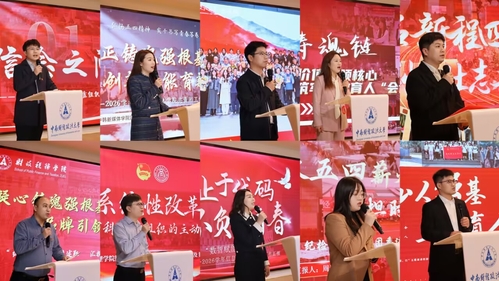 工商管理学院致力于系统性改革,激发组织活力;新闻与文化传播学院践行“四有”领航,彰显青春担当;金融学院坚持以思想引领铸魂育人;经济学院于七层维度齐发力,在“五育并举”中增实效;法学院强调心怀“国之大者”,服务立德树人根本任务;纪检监察学院传承五四薪火,勇担时代使命;公共管理学院着力培育青年英才,涵养公心本色;中韩新媒体学院守正铸魂强根基,创新赋能育新人。各学院团干部以数据和案例为支撑,全面展示了基层团组织的工作品牌与扎实成效。