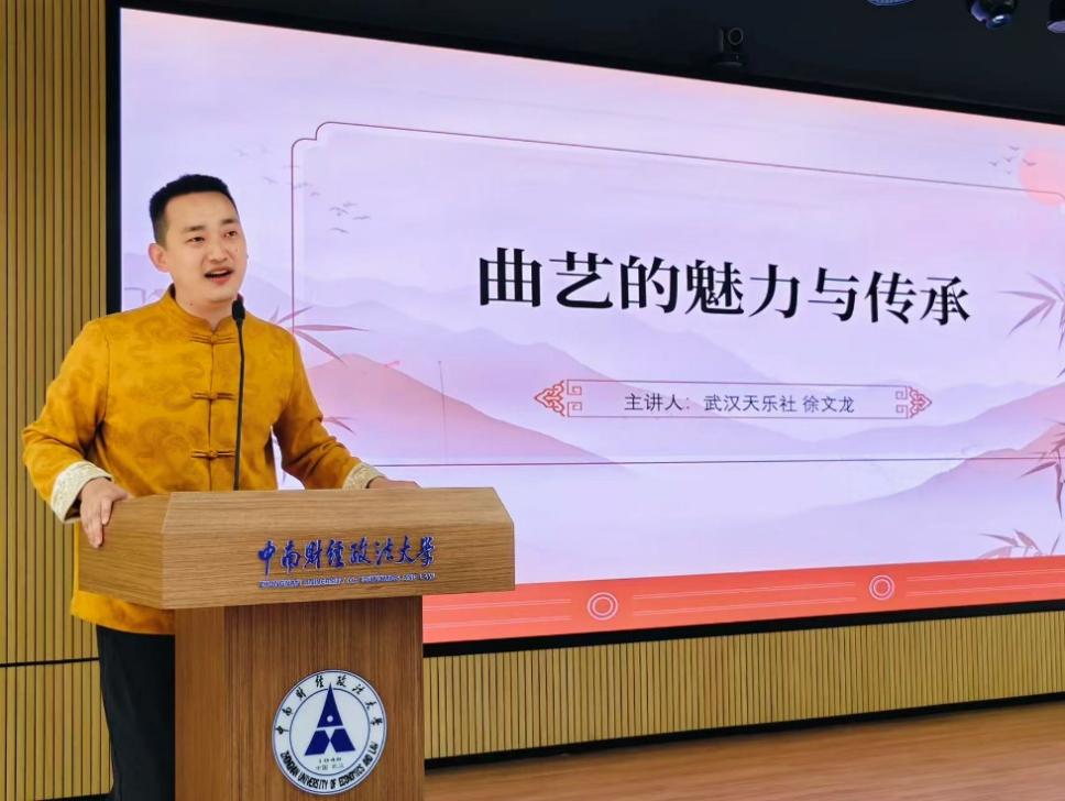 为深入贯彻中华优秀传统文化传承发展工程,推动非遗保护与高校美育深度融合,4月16日,“非遗正青春”湖北曲艺进校园专场活动在我校环湖6栋“一站式”学生社区综合服务中心多功能报告厅成功举行。本次活动由湖北省曲艺家协会、我校艺术美育中心、湖北广播电视台新闻中心、洪山区文化馆联合主办,特邀湖北省曲艺家协会会员、武汉天乐社青年相声演员徐文龙,以青春语态活化荆楚曲艺非遗,让传统艺术走近青年、浸润校园。